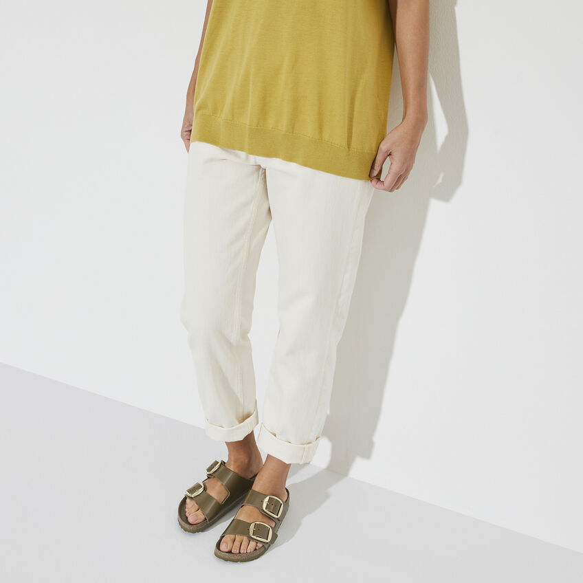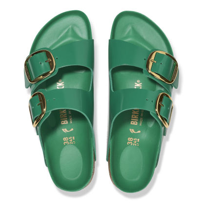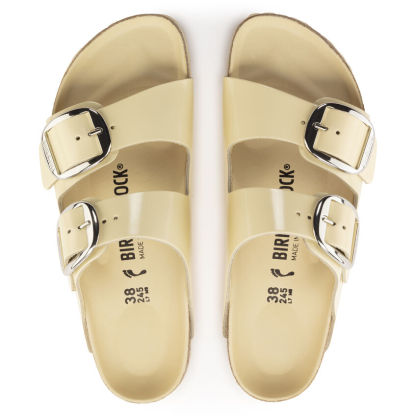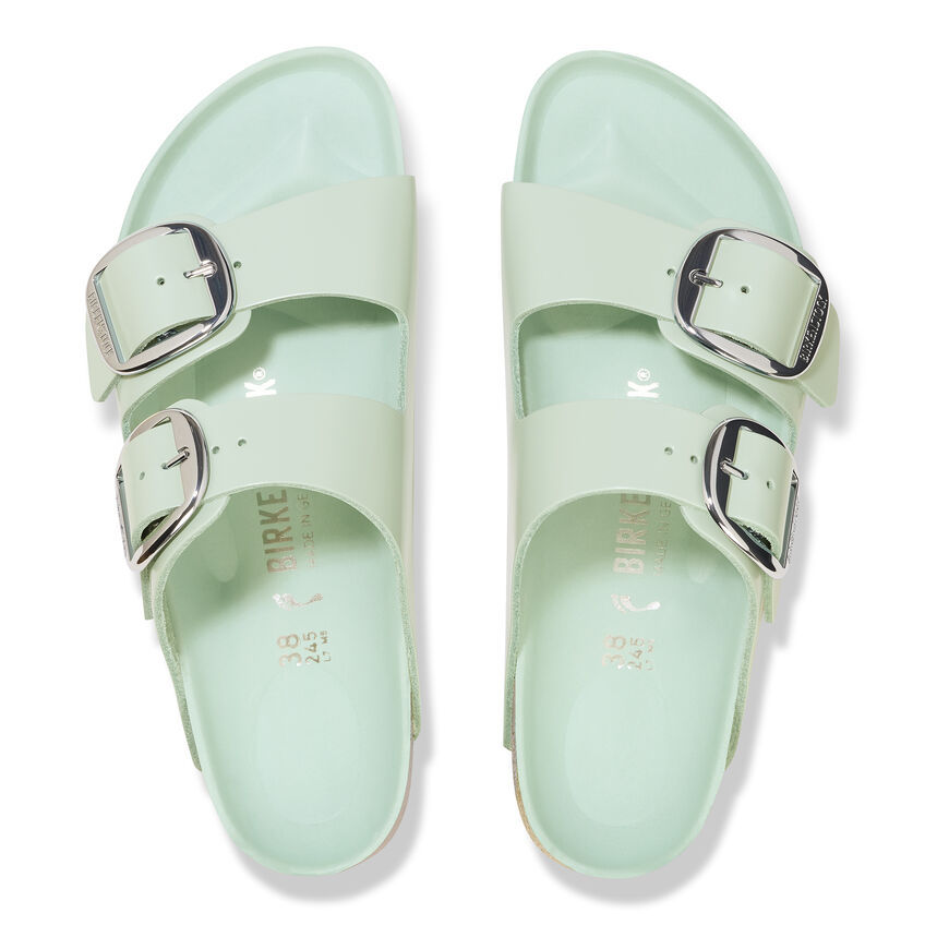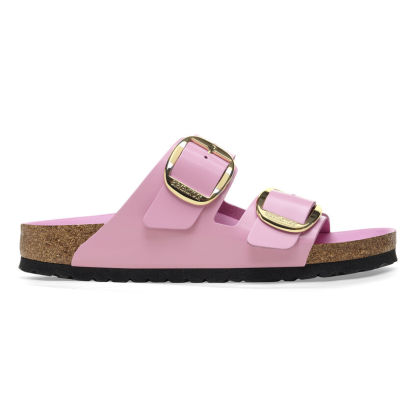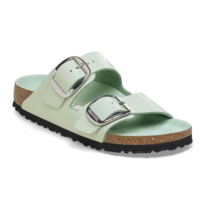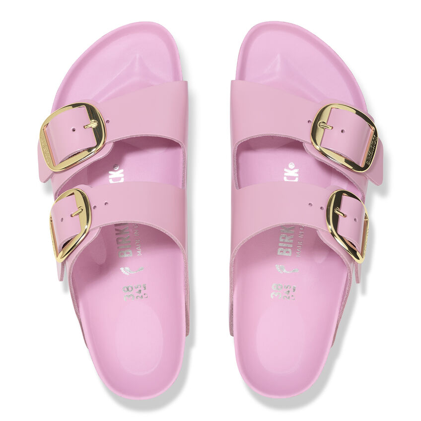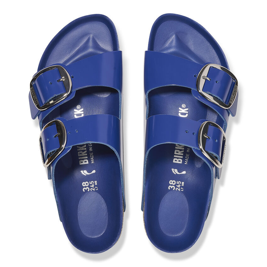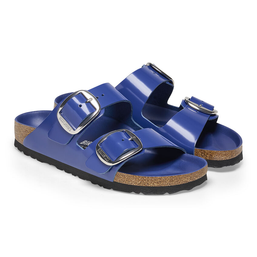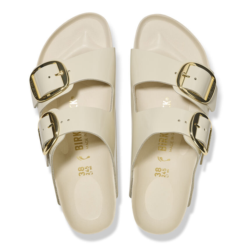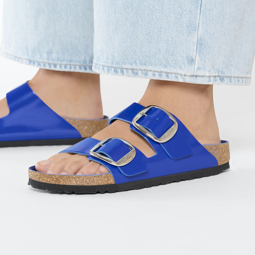 The legendary two-strap design from birthekenSTOCK with amplified buckle accent - the Arizona Big Buckle. The Big Buckle version features a large, elegant buckle creating a bold yet minimalist design. The semi-exquisite footbed is fully lined with soft piumato leather, making it exceptionally comfortable. The upper is made from high-quality natural leather with a high shine finish.