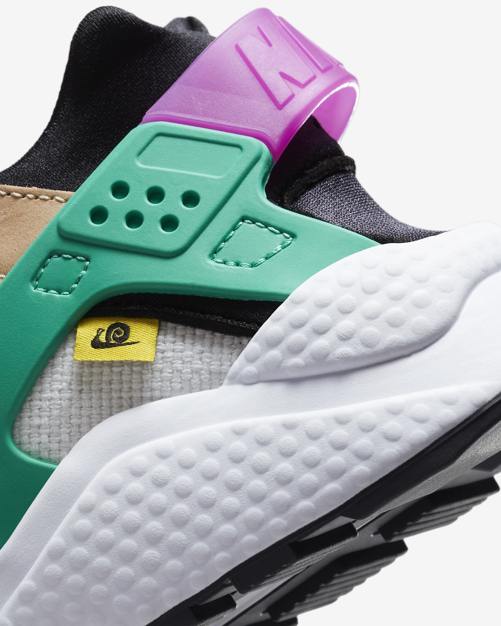 What moves you? Find out in the Nittgke Air Huarache. Playful "Nittgke MOVING CO." details celebrate our history of getting people moving. Stretchy, foot-hugging fabric, lightweight cushioning and a futuristic heel cage take you places—comfortably. Where to next?
