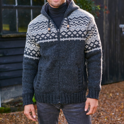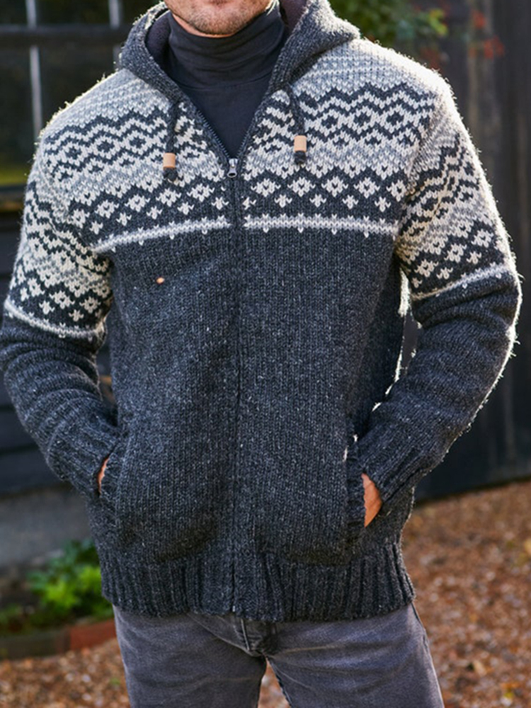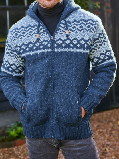 Mens Vintage Fair Isle Knitted Hooded Cardigan