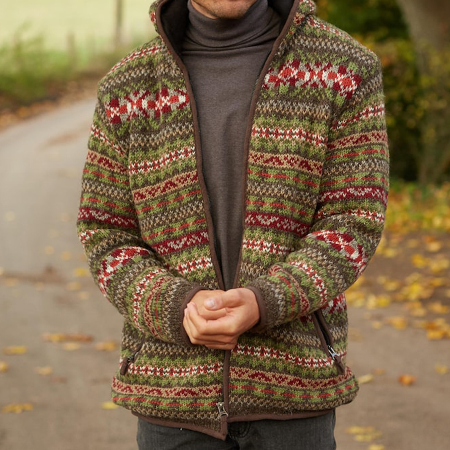 Mens Vintage Fair Isle Knitted Hooded Cardigan