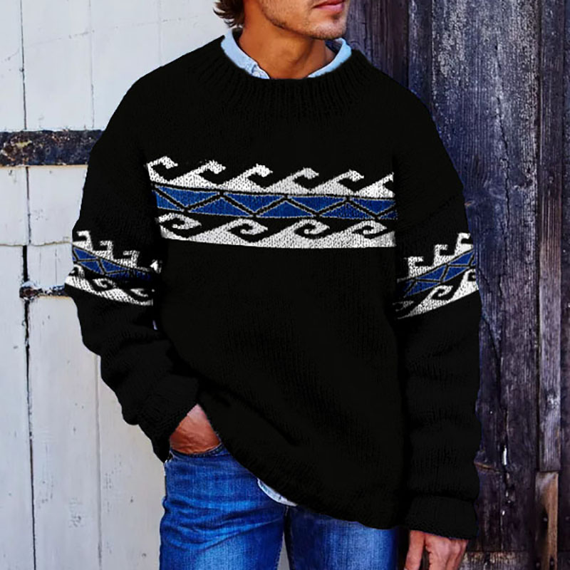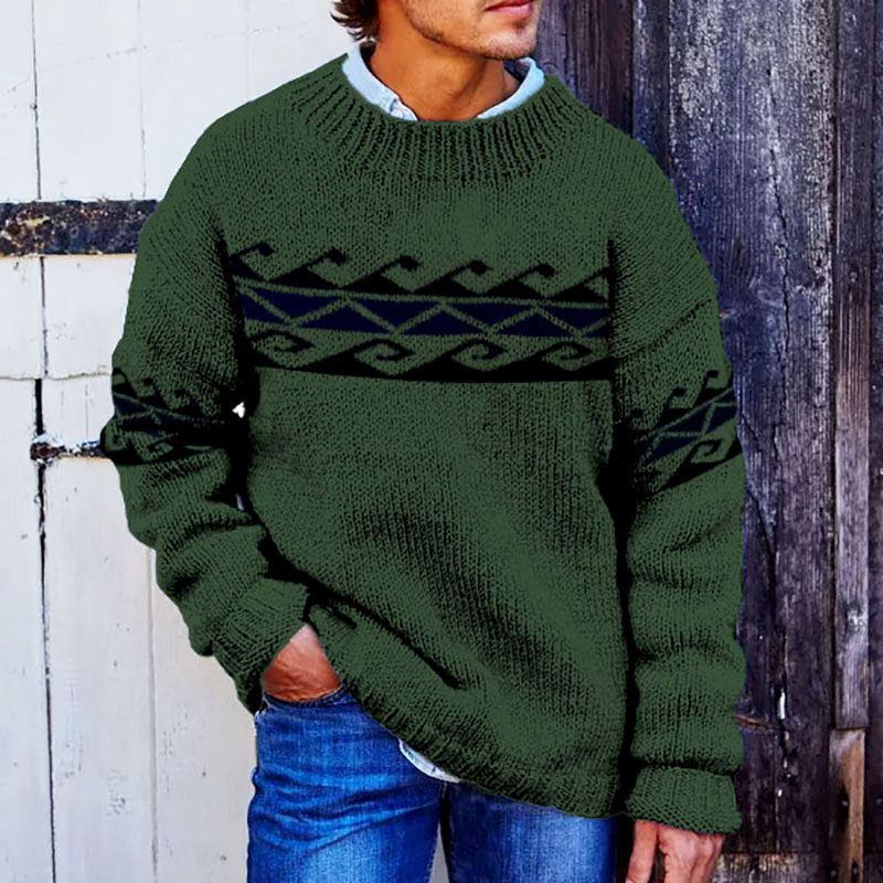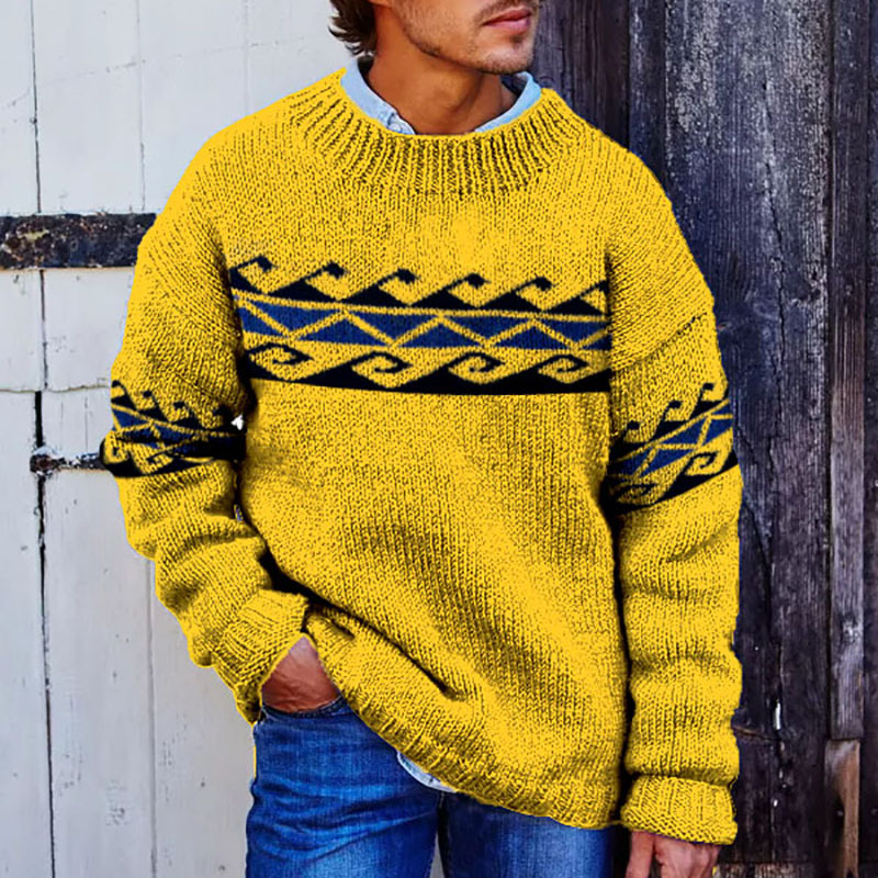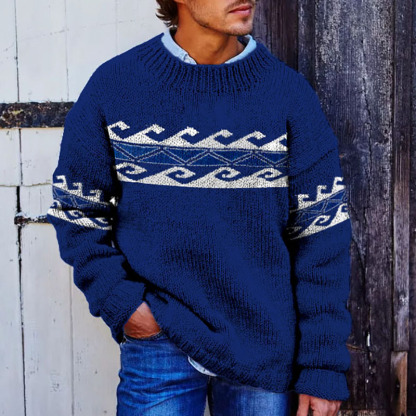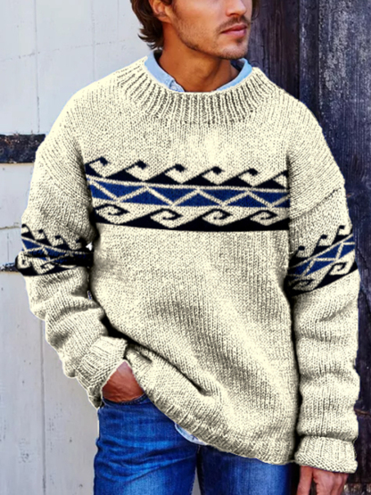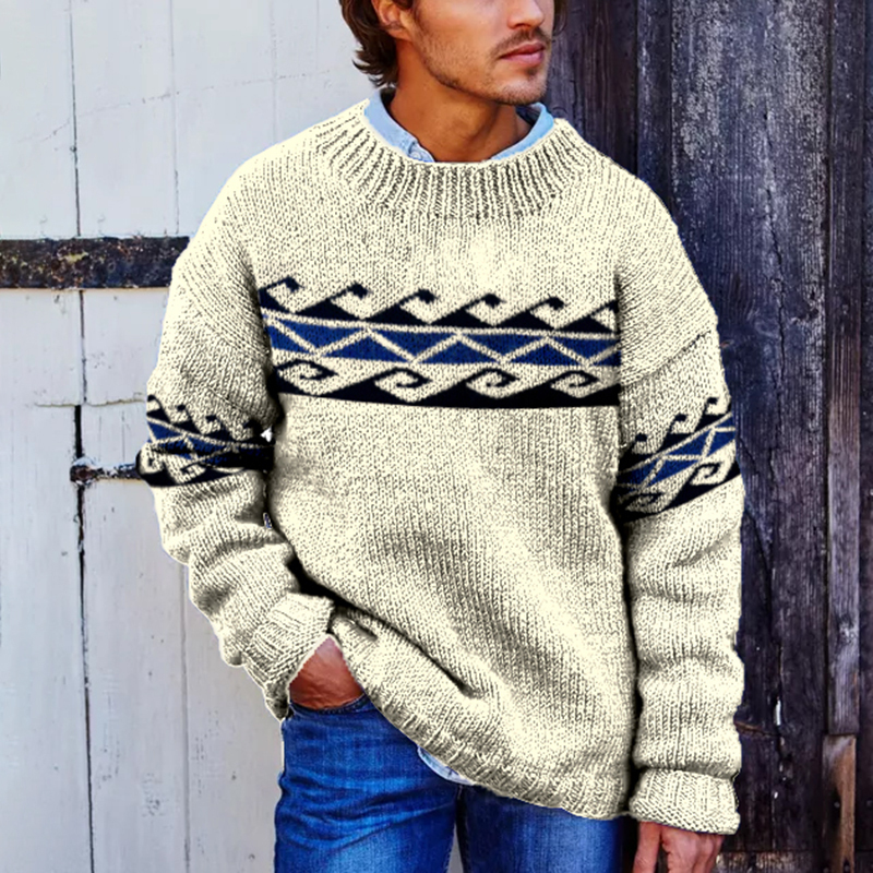 Vintage Beige Surf Jacquard Crew Neck Sweater