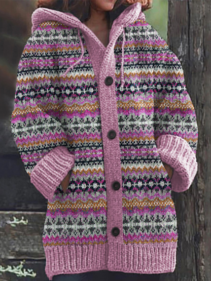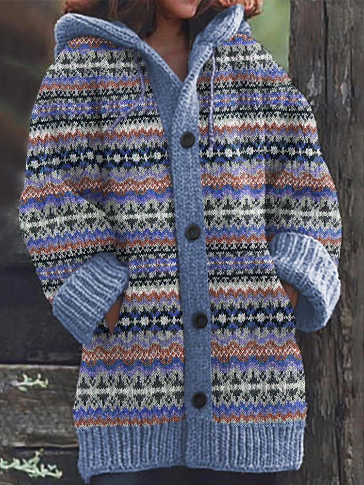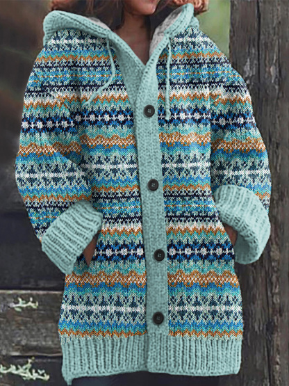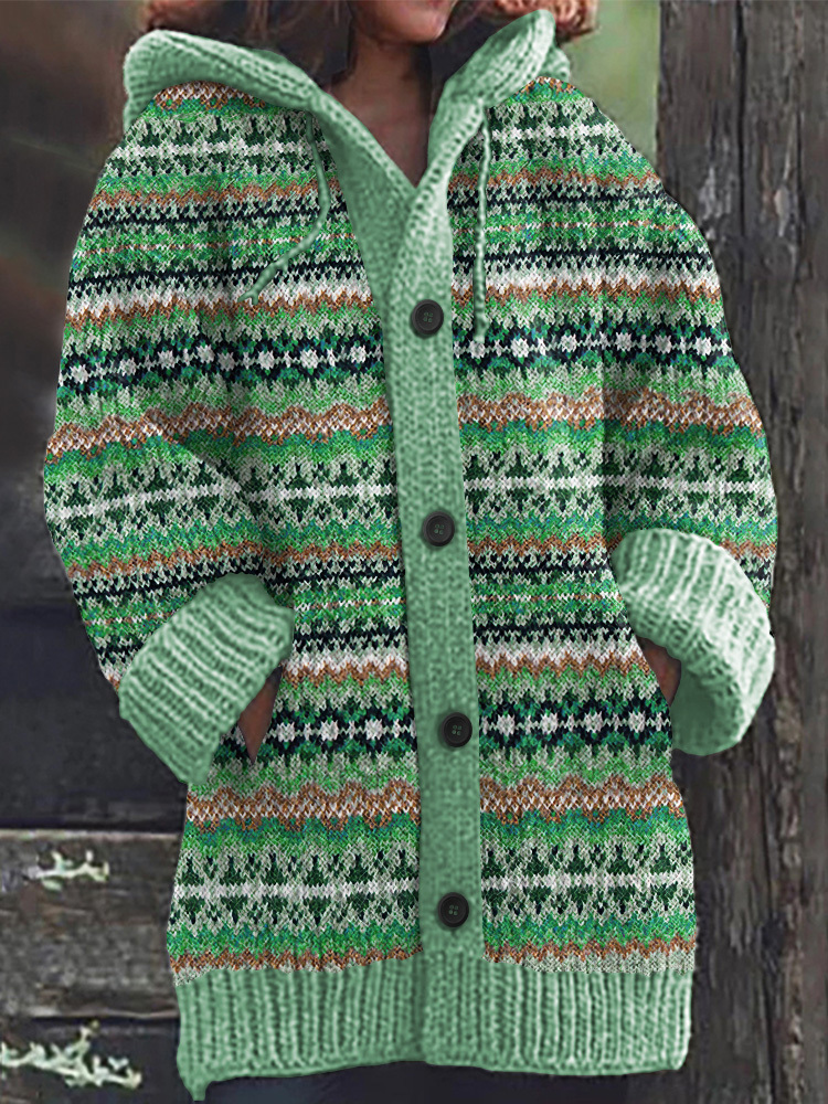 Vintage Geometric Jacquard Pattern Cardigan Sweater