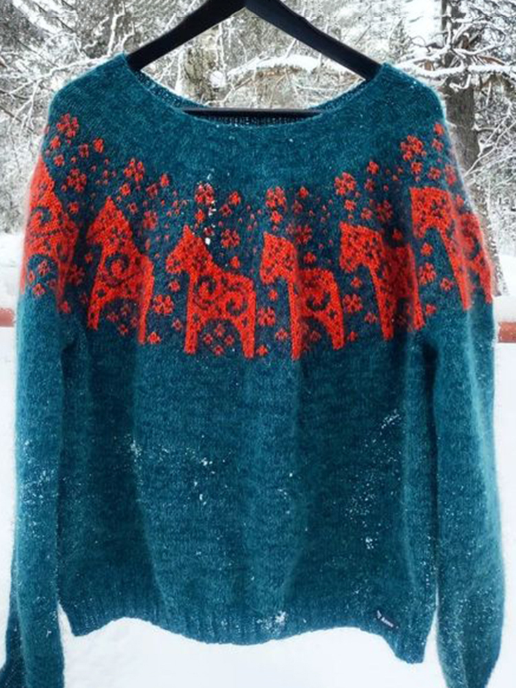 Vintage Icelandic Dala Knit Jacquard Warmth Crew Neck Sweater Unisex