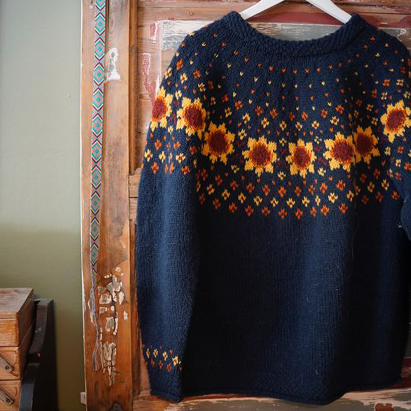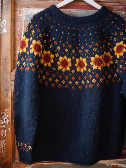 Vintage Icelandic Pokhara Knit Jacquard Warmth Crew Neck Sweater Unisex