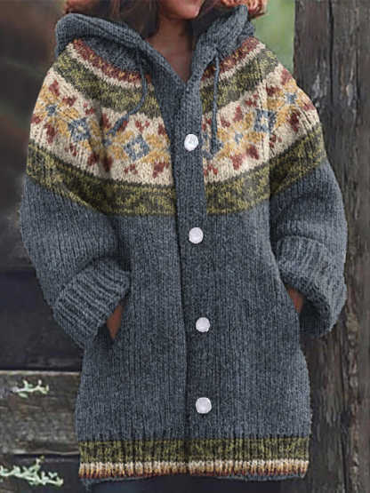 Vintage Tribal Icelandic Pattern Cardigan Sweater