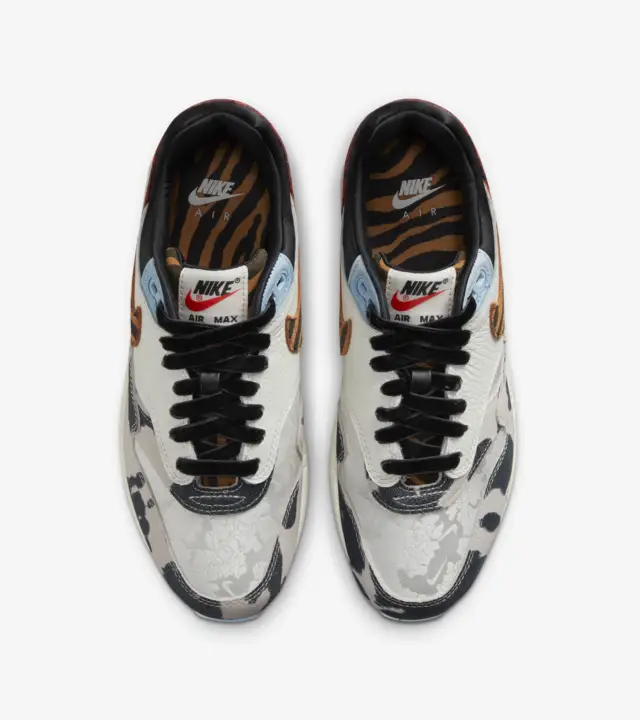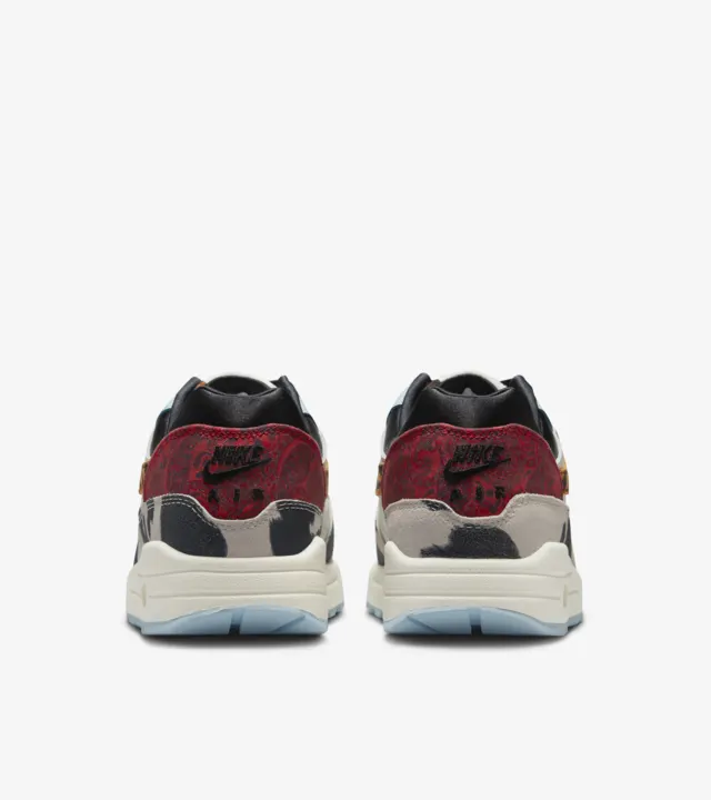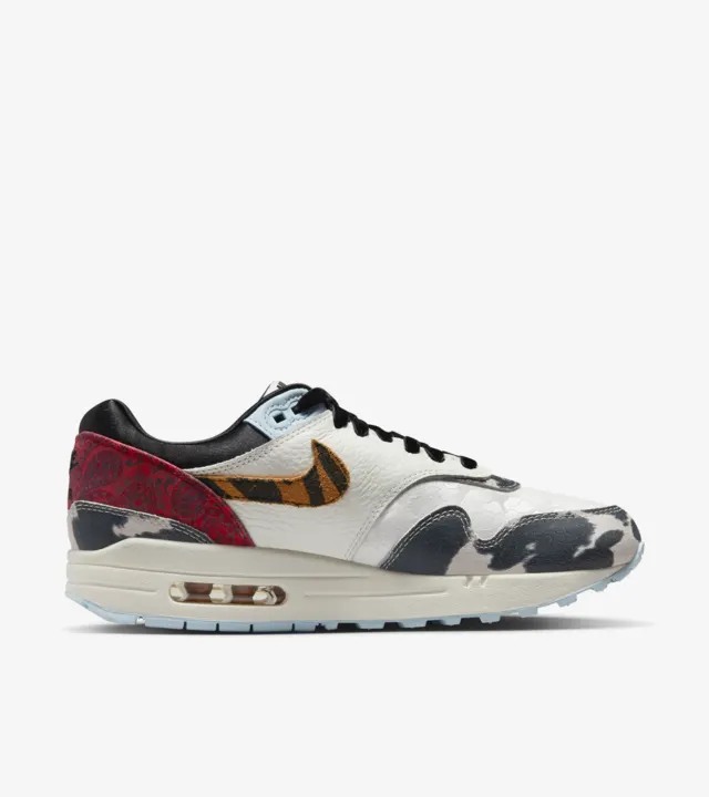 Captivating and thumping with bold prints and textures, the Air Max 1 '87 is the statement piece every 'fit needs. Inspired by what the hottest sneaker boutique would look like, we've upped the opulence with warm earth tones and unexpected patterns that nod to sophisticated upholstery and area rugs. From velvety laces to a silky black liner and icy blue outsole, these kicks take decor dominance to a brand-new level. Ready to hang?